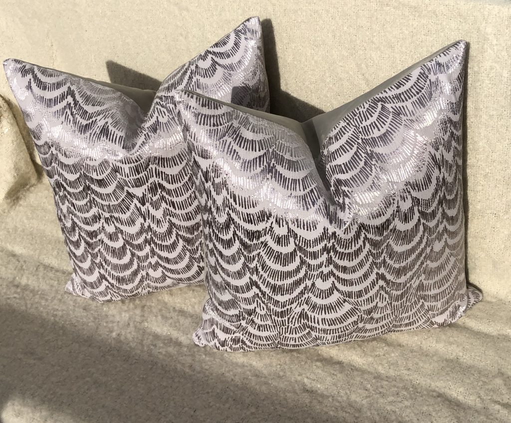 Glamour is a luxury cushion cover with violet hue. This beautiful fabric with mirrored pattern is complemented by super soft velour on the back.