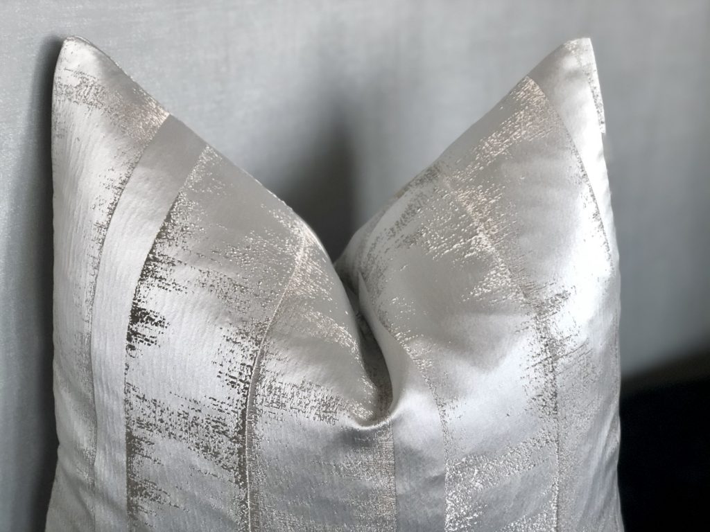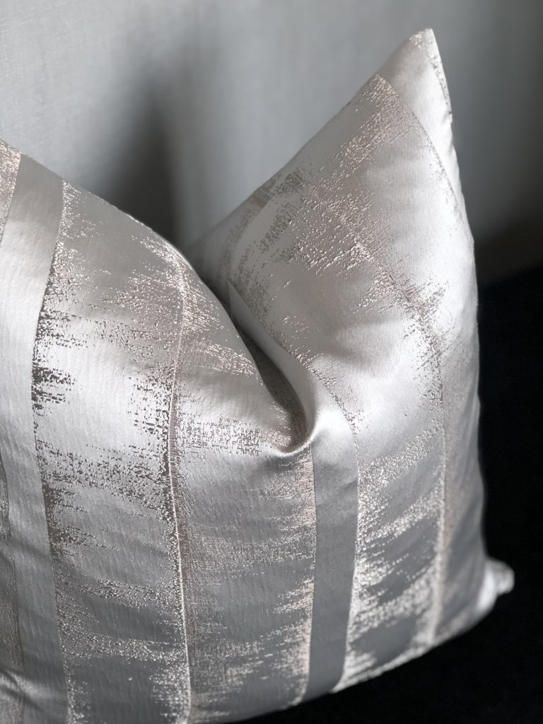 Ilaria is a beautiful silver cushion cover with silver/ rose gold detailing.