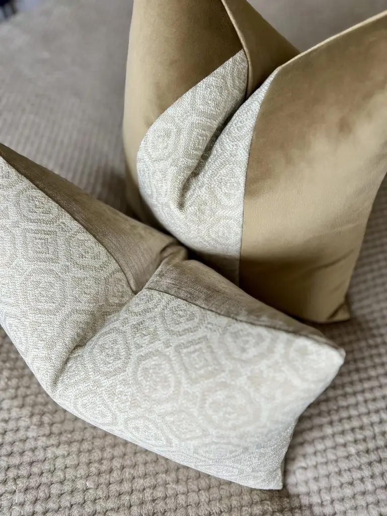 Ofelia Junior is a beautiful cushion cover with cream/beige subtle geometric pattern on the front and pearl, complementing backing.