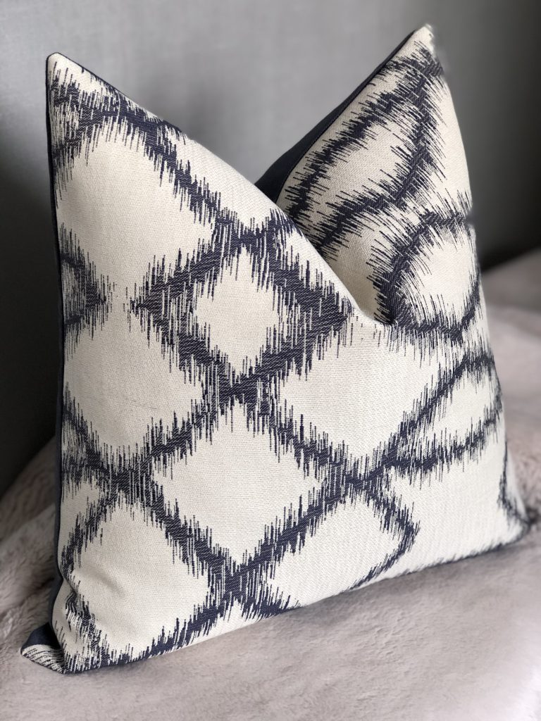 Add a touch of modern elegance with our Luxury Ivory and Navy Abstract Cushion Covers. Featuring a bold geometric ink design, these made-to-measure decorative pillows bring contemporary style and sophistication to any space.